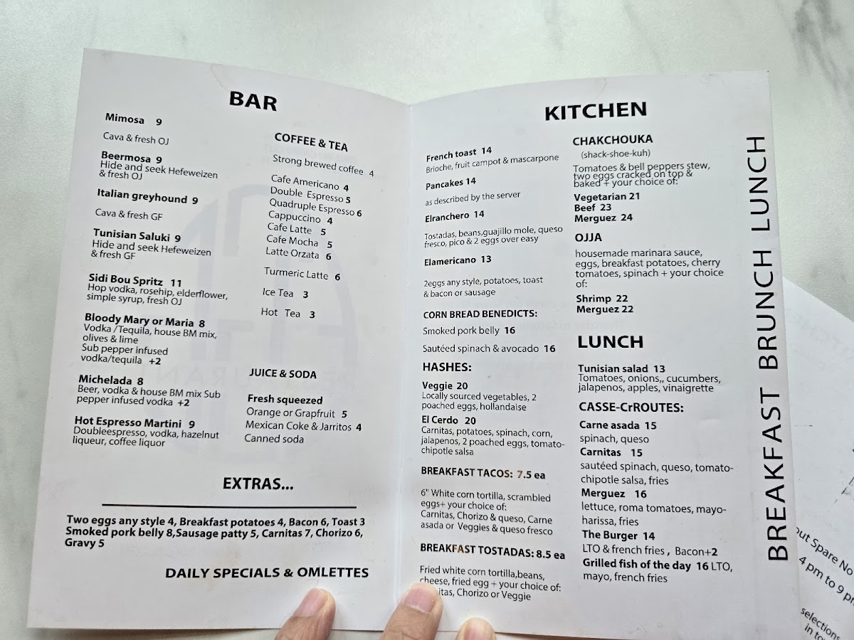 These menu items cater to those seeking either a substantial morning meal or a casual midday option. The range accommodates various preferences, from classic breakfast staples to dishes with international influences. The menu is structured to support both quick orders for coffee and lighter fare as well as sit-down brunch or lunch experiences.
